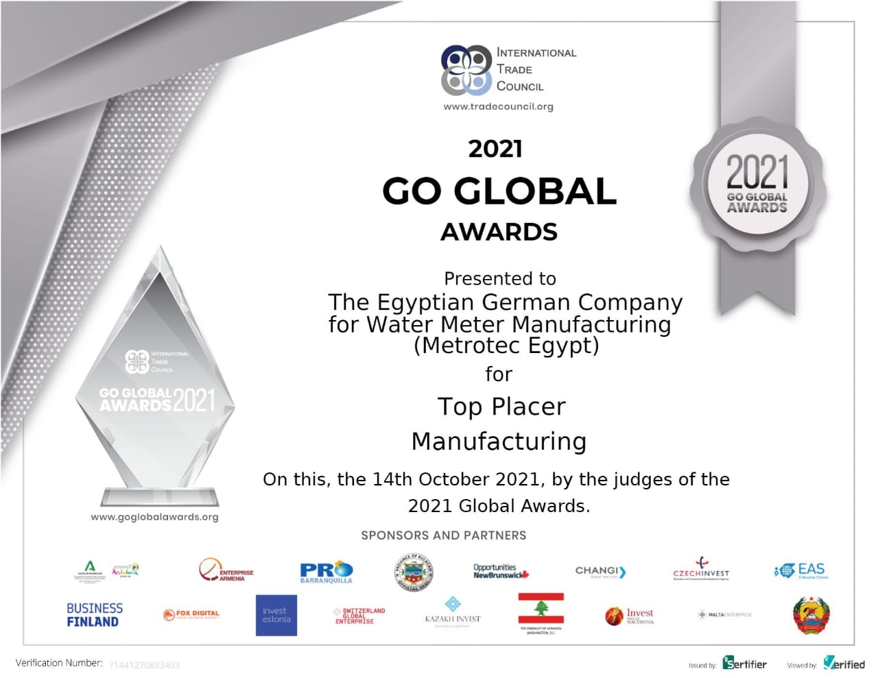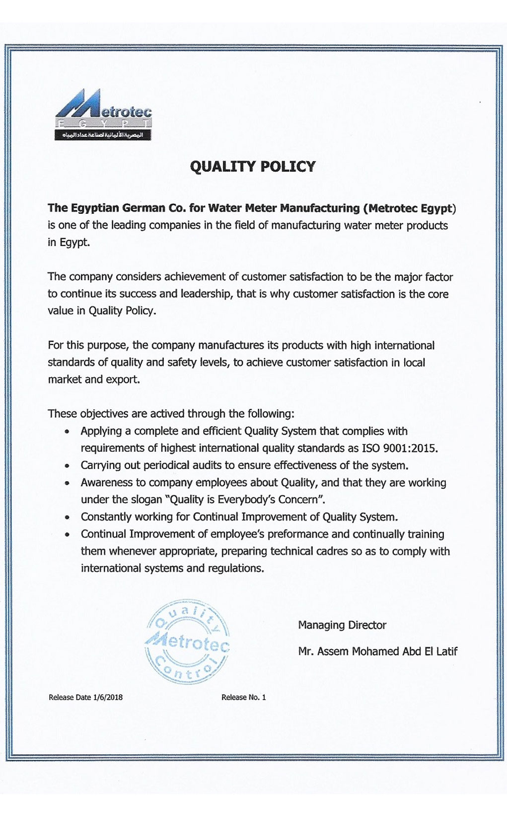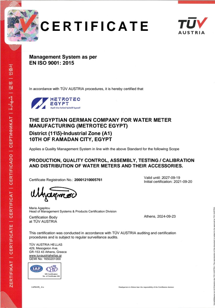 Discover the quality and precision behind Metrotec's water metering solutions through our Certificates gallery.